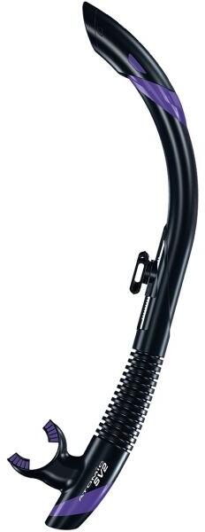 Az ATOMIC AQUATICS SV2 légzőcső remek választás hullámzó vizekre. Ez a modell az alsó kilégzőszelepet és a semi-dry felső részt ötvözi. Az egyirányú szelep gondoskodik a víz elvezetéséről. A légzőcső tetején befolyó víz teljesen megkerüli a szájrészt (1), és a kivezető szelepen (4) keresztül kifolyik. Ha több víz kerül be, az a légzőcső testének belsejében található csőbe (2) kerül, amelyet egy kis kivezető szelep (3) zár le, amelyet úgy terveztek, hogy a víz a szájrész körül áramolhasson, és elhagyja ezt a területet (4) anélkül, hogy a légzőtérben feleslegesen felhalmozódna. A búvár egyszerűen kilélegzik, és már egy kis túlnyomás elegendő ahhoz, hogy a belső cső száraz maradjon.